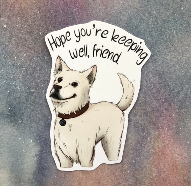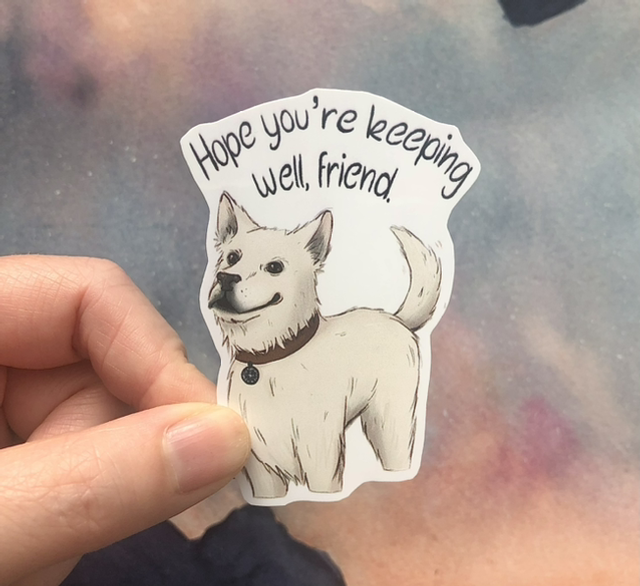 Vinyl sticker, non waterproof. About 6cm high.