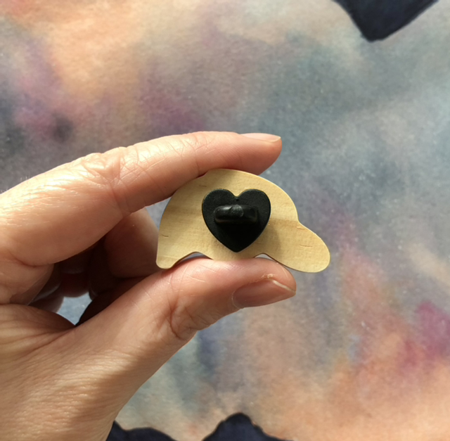Wooden pin with image printed on top. Single clutch.