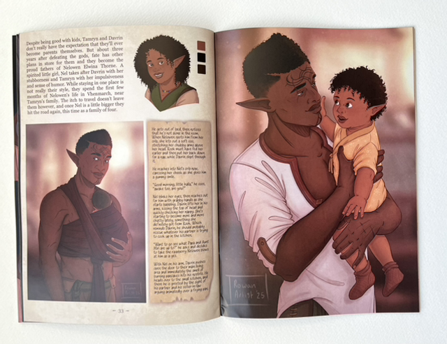 Contains 40 pages of art, text tidbits and fic snippets about Davrin and my Rook, Tamryn Thorne.