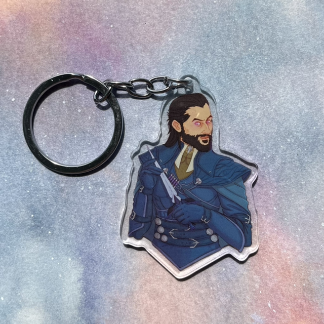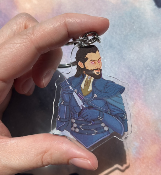 Double sided, acrylic keychain. About 6cm high and 4cm wide.