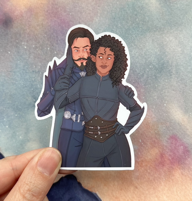 Matte vinyl sticker, non-waterproof. About 8cm high.